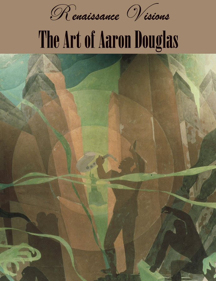 “Aaron Douglas’s paintings were also influenced by other arts that thrived in Harlem: jazz, blues, dance, poetry. Lines, shapes and colors in his paintings are repeated and varied like jazz themes or blues riffs. The gestures of his figures often reflect the graceful, funky movement of jazz dancers. And his art is loaded with visual metaphors and symbolism which read like painted poetry.”