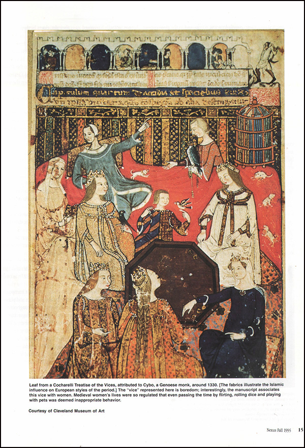 “In these etiquette schools, young men and women received training in courtesy, poise and the arts. They also learned how to flirt – when to encourage and when to feign indifference. Medieval courtship followed a strict set of do’s and don’ts known as the code of courtly love. If a young lady accepted gifts from a man who was paying her court, the code presumably demanded that she eventually take him as her beau. If he gave her a ring, she was required to wear it backwards – with the stone pointing inward – on the little finger of her right hand.”