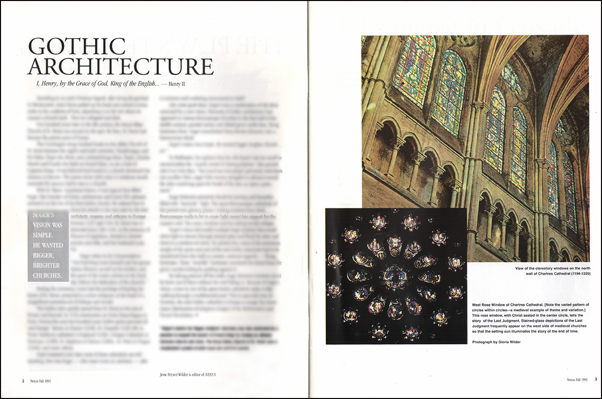 Eleanor of Aquitaine & her husband King Louis VII led the Second Crusade; Richard the Lionhearted and Philip II led the Third Crusade; Abbot Suger, the inventor of Gothic architecture, was Eleanor’s personnel confessor & served as regent of France while she and Louis crusaded; Eleanor and Louis attended the opening of the first Gothic cathedral, Saint Denis; Richard, Philip II, & Eleanor’s granddaughter Blanche of Castile helped pay for the great Gothic cathedral Chartres; John signed Magna Carta; and the principal  struggles in the play showcase feudalism and primogeniture.